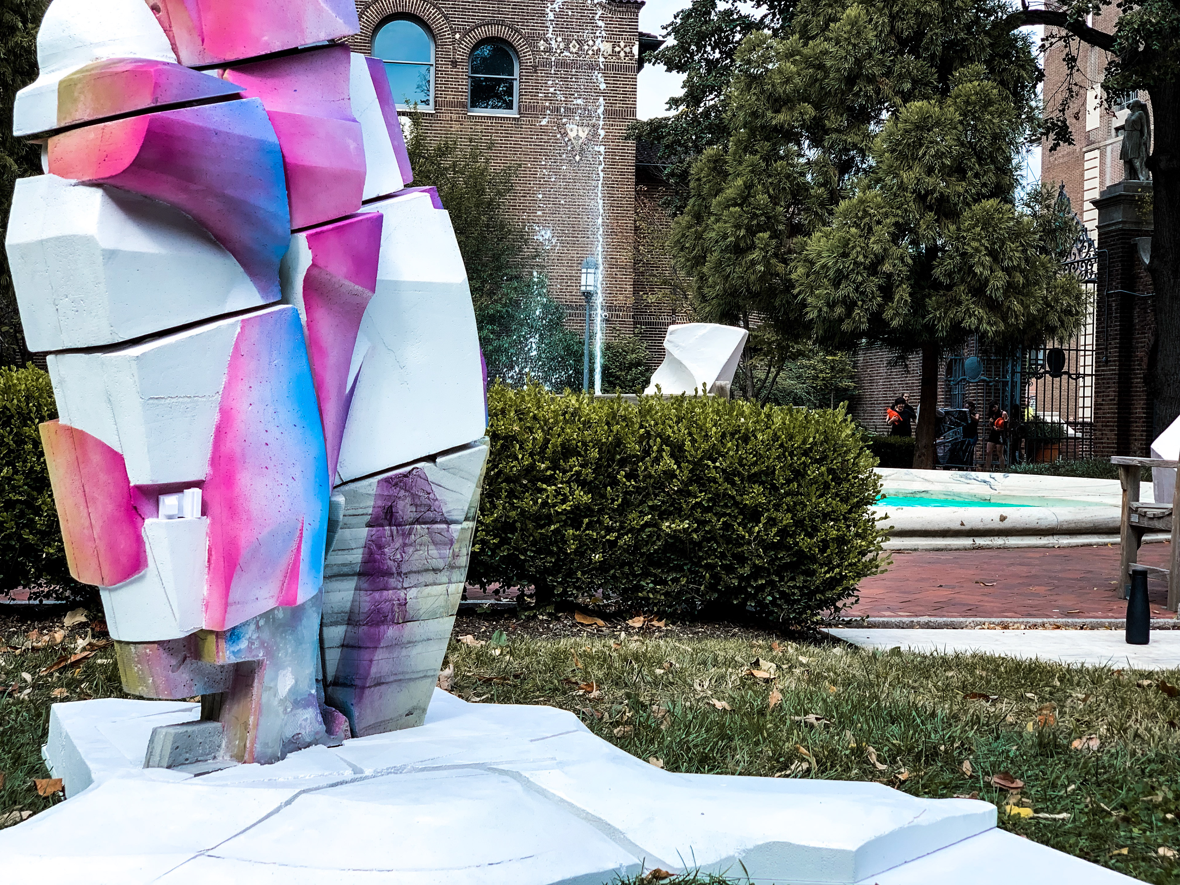 As a class, we were tasked to scan and create multiple point clouds of the Penn Museum in order to start designing. The process and understanding of how to use the point clouds eventually became an inspiration into creating a methodology for the form of the installation and the building. This process involved using a repetitive process of layering, offsetting, and seaming. Layering, which implied the aggregation of the point clouds to get a clearer image, was used to create a formal part to whole relationship between itself as a sum of parts. Offsetting, which adds complexity, was used to cut into the massing and start to contextualize to itself and to the site. Seaming, which references the relationship between the layers of information between the point cloud, is used to not only break the mass into new parts to create new visual misreading, but compositionally starts to read the form as a whole once again. And finally, the solid to void relationship to the site was also important to consider since it helps distribute the form and program around the courtyard.